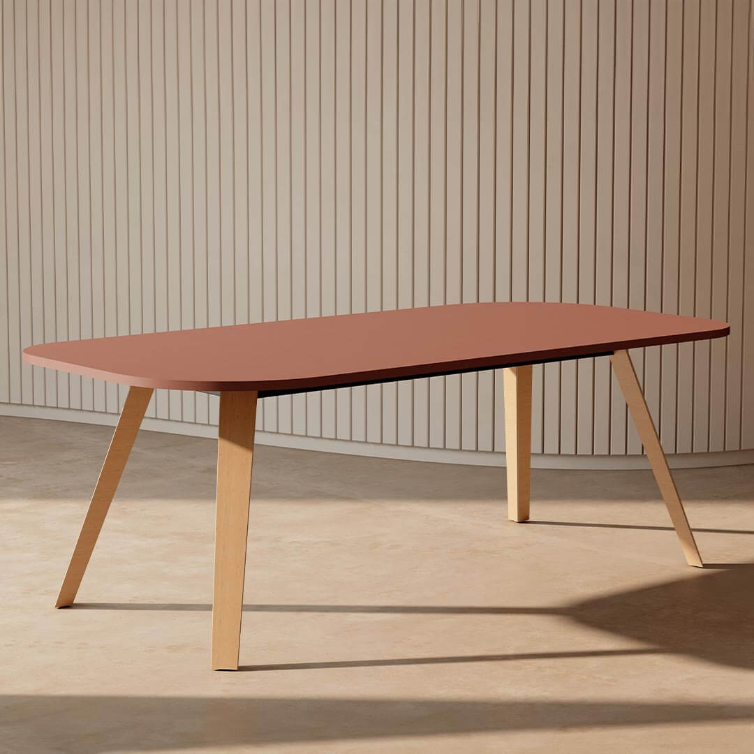 + Piètement incliné : disponible en bois ou en métal